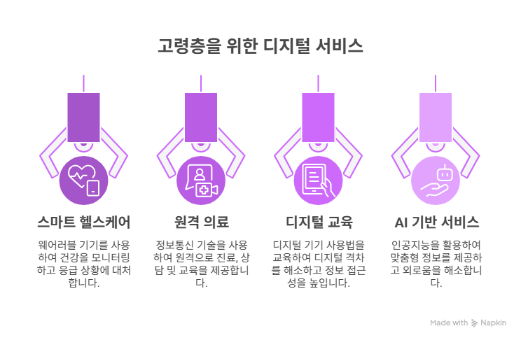 실버산업은 2030년대에는 국가 핵심 산업으로 자리매김할 전망입니다. 특히 다음과 같은 트렌드가 주목받고 있습니다.