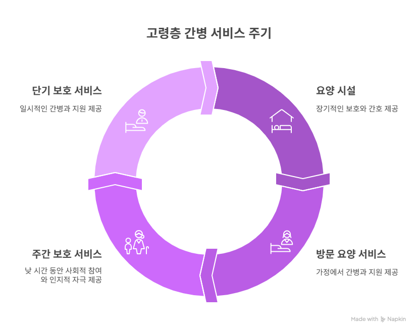 신체적 또는 정신적으로 보호가 필요한 고령층을 위한 필수 서비스입니다. 가족의 부담을 덜고 전문적인 케어를 받을 수 있도록 합니다.