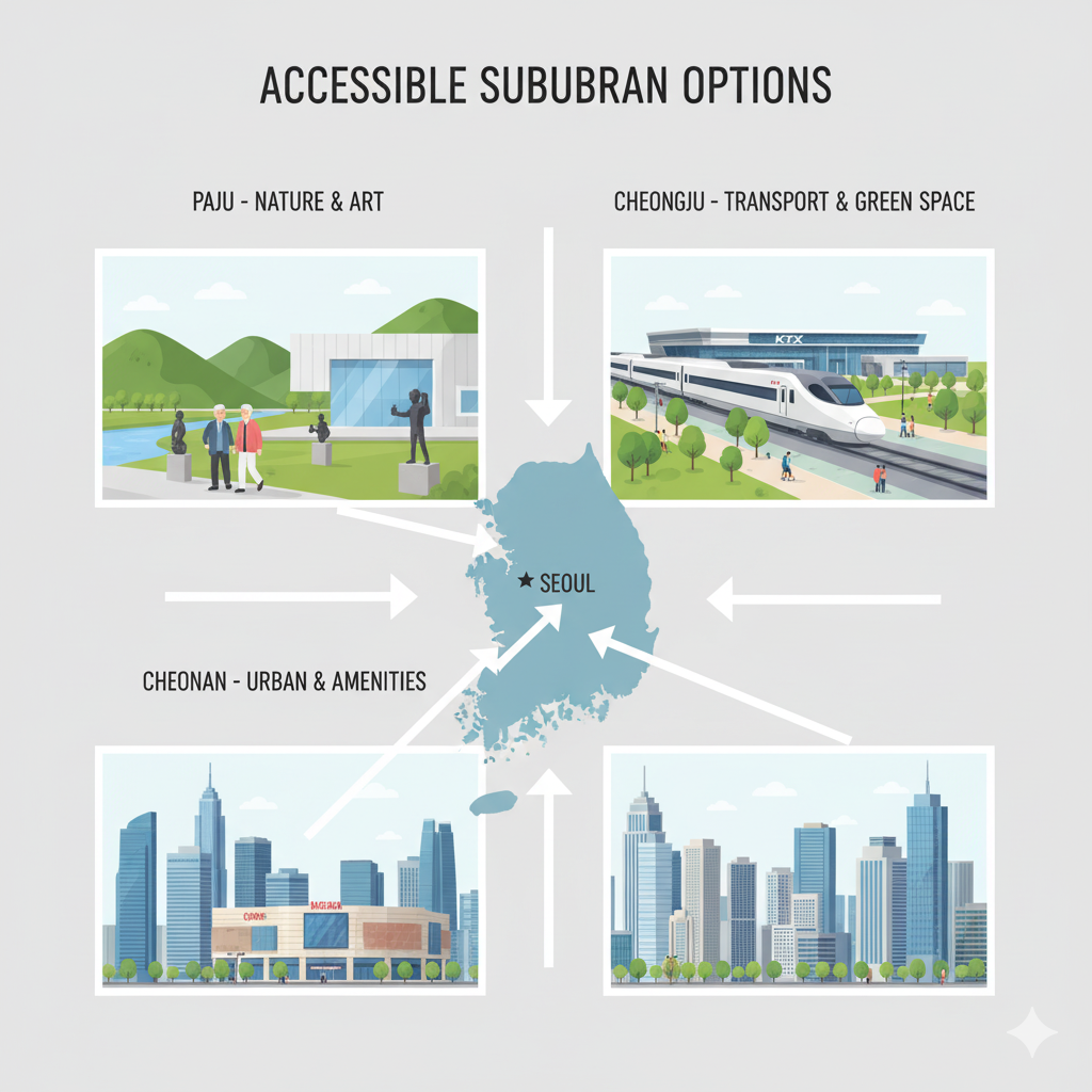 - 단점: 대중교통 의존 시 이동 시간이 다소 길 수 있고, 의료 인프라가 서울만큼 다양하지는 않아요.