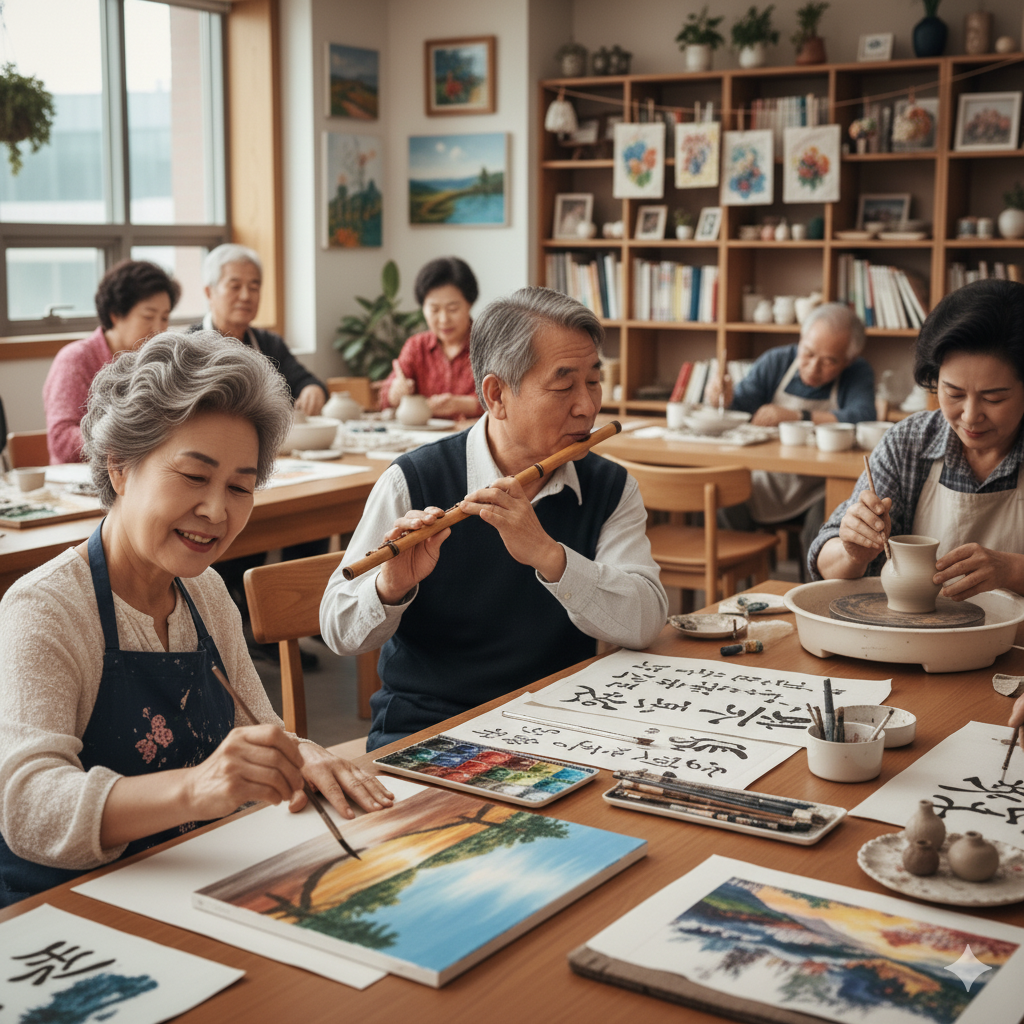 - 내용: 외국어 학습(영어, 일본어 등), 컴퓨터 및 스마트폰 활용 교육, 역사, 문학, 철학 강좌, 시사 토론, 재테크 스터디 등 지적인 만족감을 채워주는 활동들입니다.