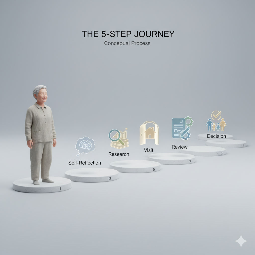 오늘은 그동안 고민하고 탐색해오셨던 정보들을 한데 모아, 고객님의 노후를 위한 가장 현명한 실버타운을 찾아낼 수 있는 실질적인 가이드를 제공해 드릴게요. 이 5단계 프로세스를 따라가다 보면, 고객님의 가치관과 필요에 꼭 맞는 꿈의 보금자리를 발견하실 수 있을 것입니다.