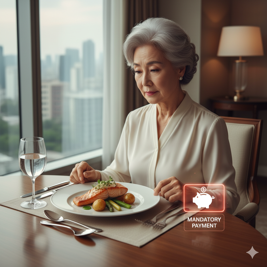 실버타운의 큰 장점 중 하나가 식사를 제공해 주는 거죠? 하지만 이 식사마저도 **식비 의무 지출**이라는 숨은 비용이 될 수 있어요. 생각보다 나가는 돈이 만만치 않거든요.