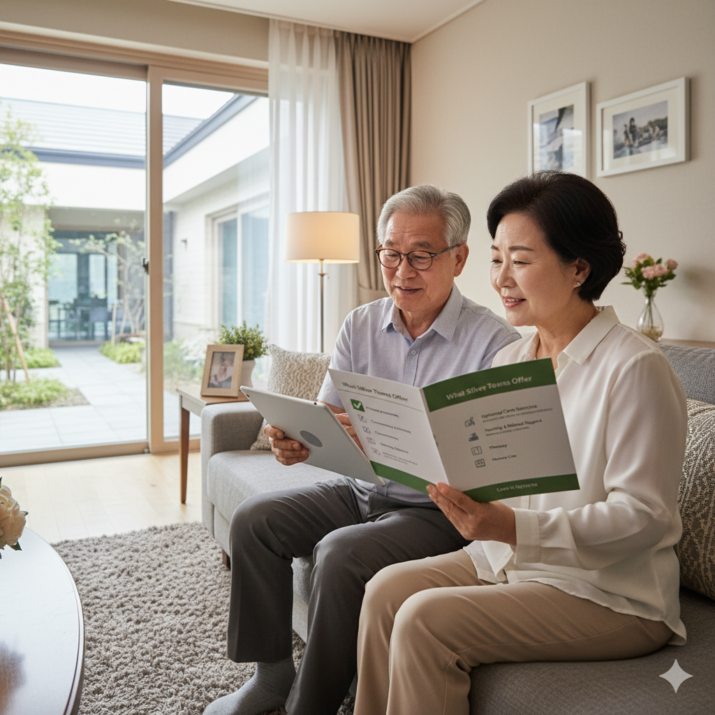 • 주거의 자유로움과 편의성 강조: 실버타운은 공동체 생활 속에서 개인의 프라이버시를 존중하고, 다양한 여가 활동이나 문화 생활을 즐기며 삶의 질을 높이는 데 초점을 맞춰요. 간병보다는 주거의 쾌적함과 편의성이 더 강조되는 곳이죠.