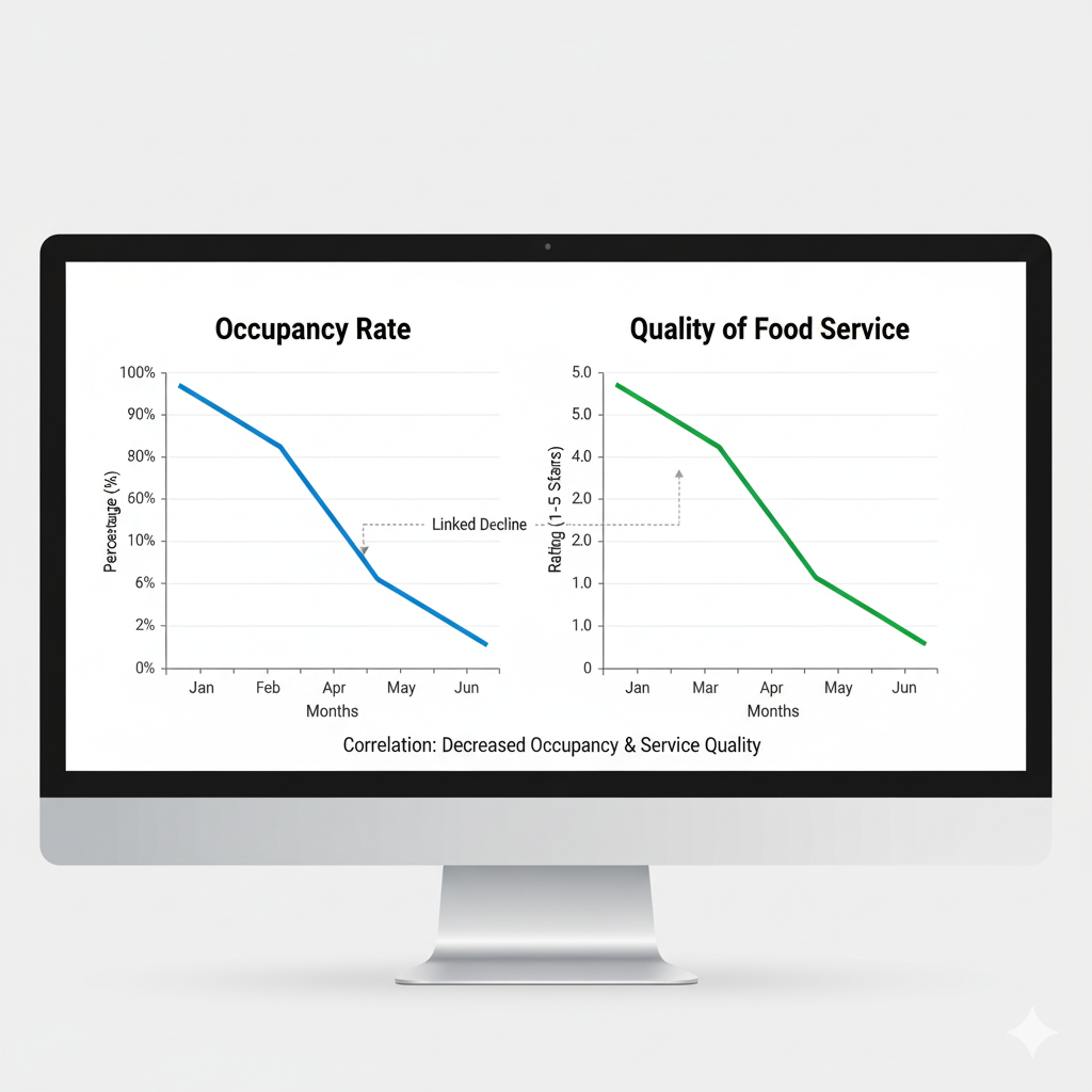 • 문제: 공실률이 높아지면 실버타운 재정 안정성이 악화되고, 운영 주체는 적자를 메우기 위해 인건비 절감을 꾀합니다. 간호사, 요리사, 청소 인력 등 실버타운 서비스를 제공하는 핵심 인력이 줄어들면, 식사의 질 하락, 청소 불량, 응급 상황 대응 지연 등 서비스 악화가 필연적으로 따라옵니다.