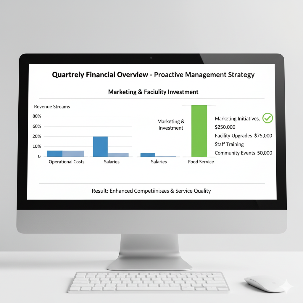 • 문제: 재정 악화를 겪는 실버타운시설 유지보수에 대한 투자를 줄이게 됩니다. 냉난방 설비 교체, 건물 외벽 보수, 커뮤니티 장비 업그레이드 등이 지연되면서 시설이 급격히 노후화됩니다.
