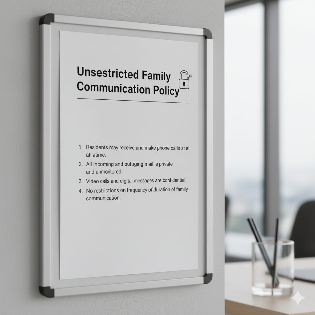 - 만족의 기준: 외부 지인 방문 시 신분 확인은 필수이지만, 사전 예약이나 복잡한 서류 절차 없이 간소화된 면회 절차를 통해 가족과의 소통이 방해받지 않는지 점검해야 합니다.