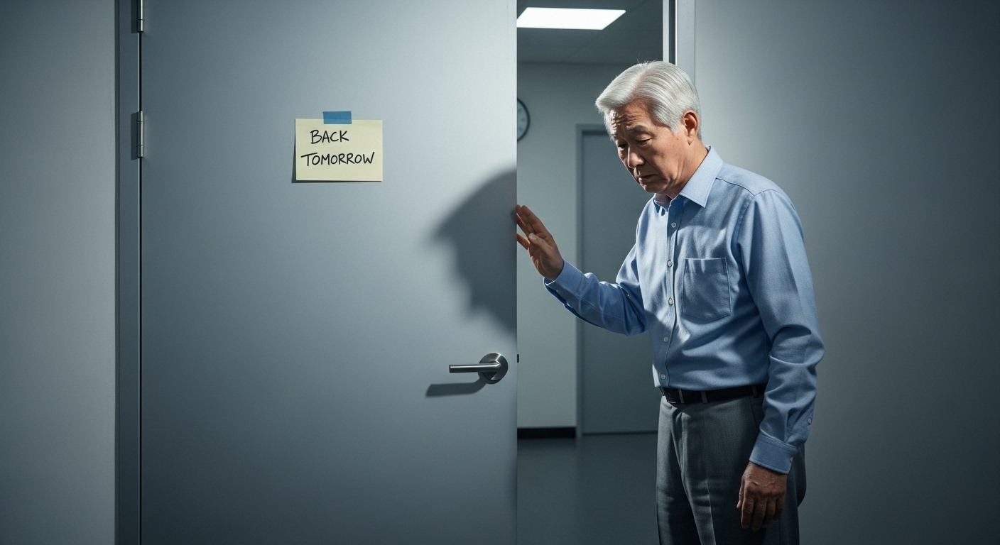 김 할아버지: (문고리를 만지작거리며) 박 여사, 이게 무슨 건강관리실입니까? '월요 진료, 수요일 오후 휴진'이 뭡니까! 어제 제가 가슴이 좀 답답했는데, 이 문이 닫혀 있어서 혼자 맨손 체조만 했습니다.