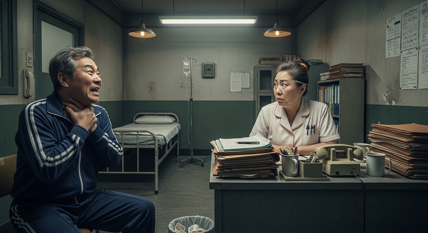 박 할머니: (작은 목소리로) 김 선생, 우리 주치의 선생님은 '주 2회 방문하시는 귀한 손님' 아니셨나요? 제가 지난번에 약을 타러 왔더니, 간호사 한 분만 계시고 의사 선생님은 안 계시더군요. 실버타운 의료 서비스가 '의료진의 유령화' 수준이에요!